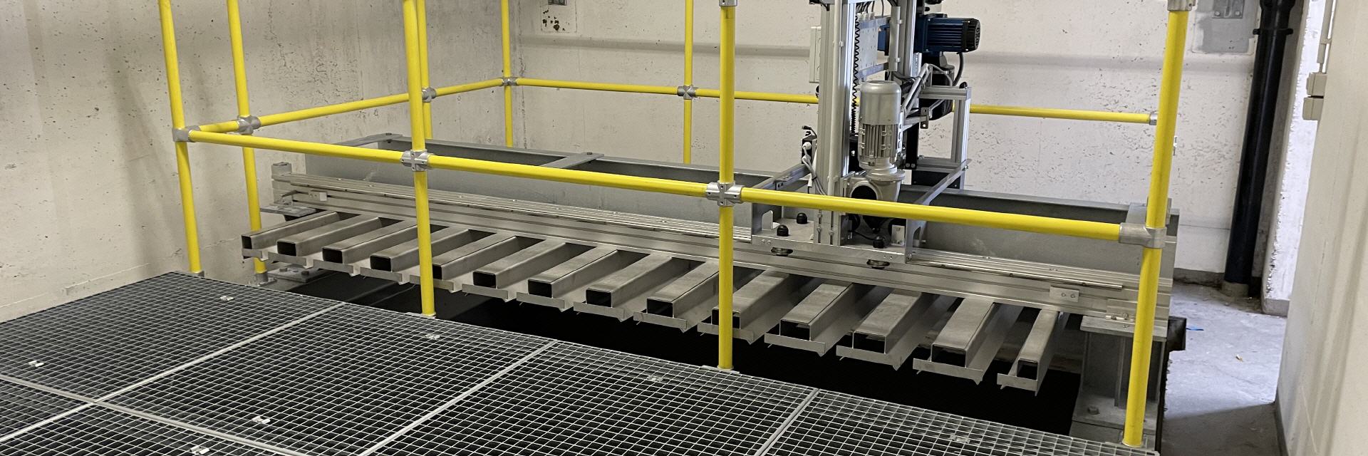 Die neue Schlauchaufhängeanlage vom Typ SBA für eine Aufhängekapazität von 260 Schläuchen sowie die zusätzliche Podestebene mit feuerverzinkten Stahlgitterrosten ist montiert.
