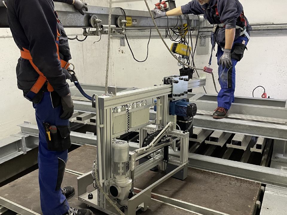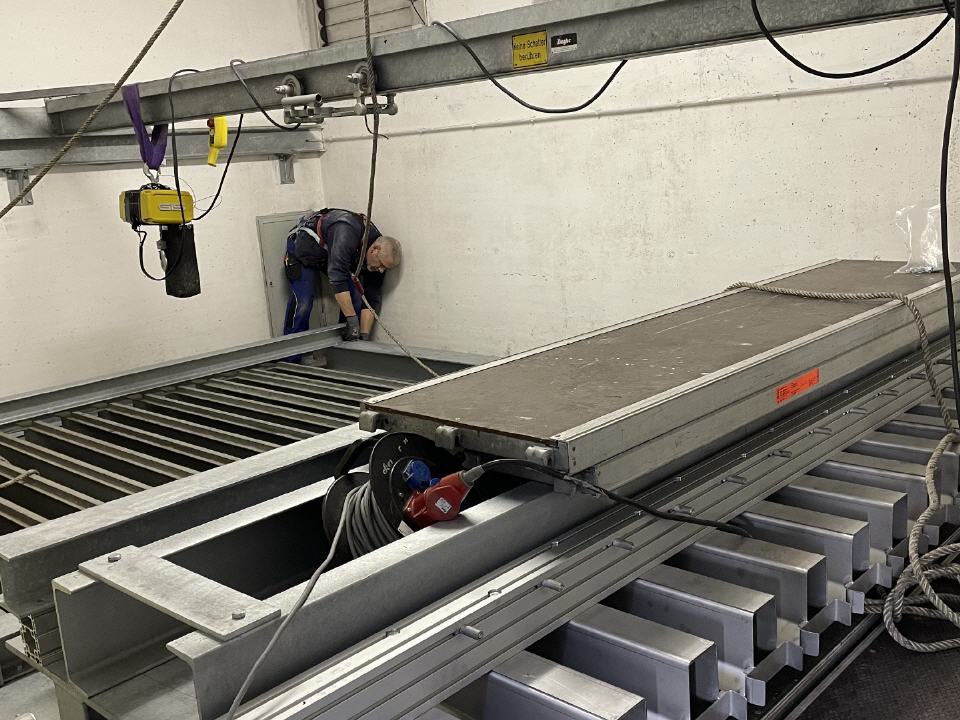 Eine in die Jahre gekommene Schlauchaufhängeanlage vom Typ Ziegler VSV soll gegen eine neue Schlauchaufhängeanlage vom Typ SBA 260 ausgetauscht werden.