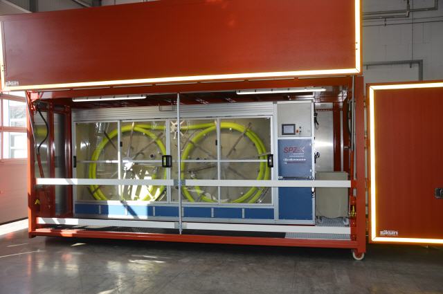 Unsere moderne Schlauchpflegeanlage vom Typ SPZ-K Classic Line wurde nach kurzer Bauzeit an den US Army Stützpunkt in Grafenwöhr übergeben. Die Anlage ist ein Sondermodell, welches speziell für den Einbau in einen Abrollcontainer entwickelt und gebaut wurde. Durch den mobilen Betrieb der Anlage im Abrollcontainer ist die unabhängige Pflege von Schläuchen an verschiedenen Standorten innerhalb und außerhalb des Stützpunktes möglich.