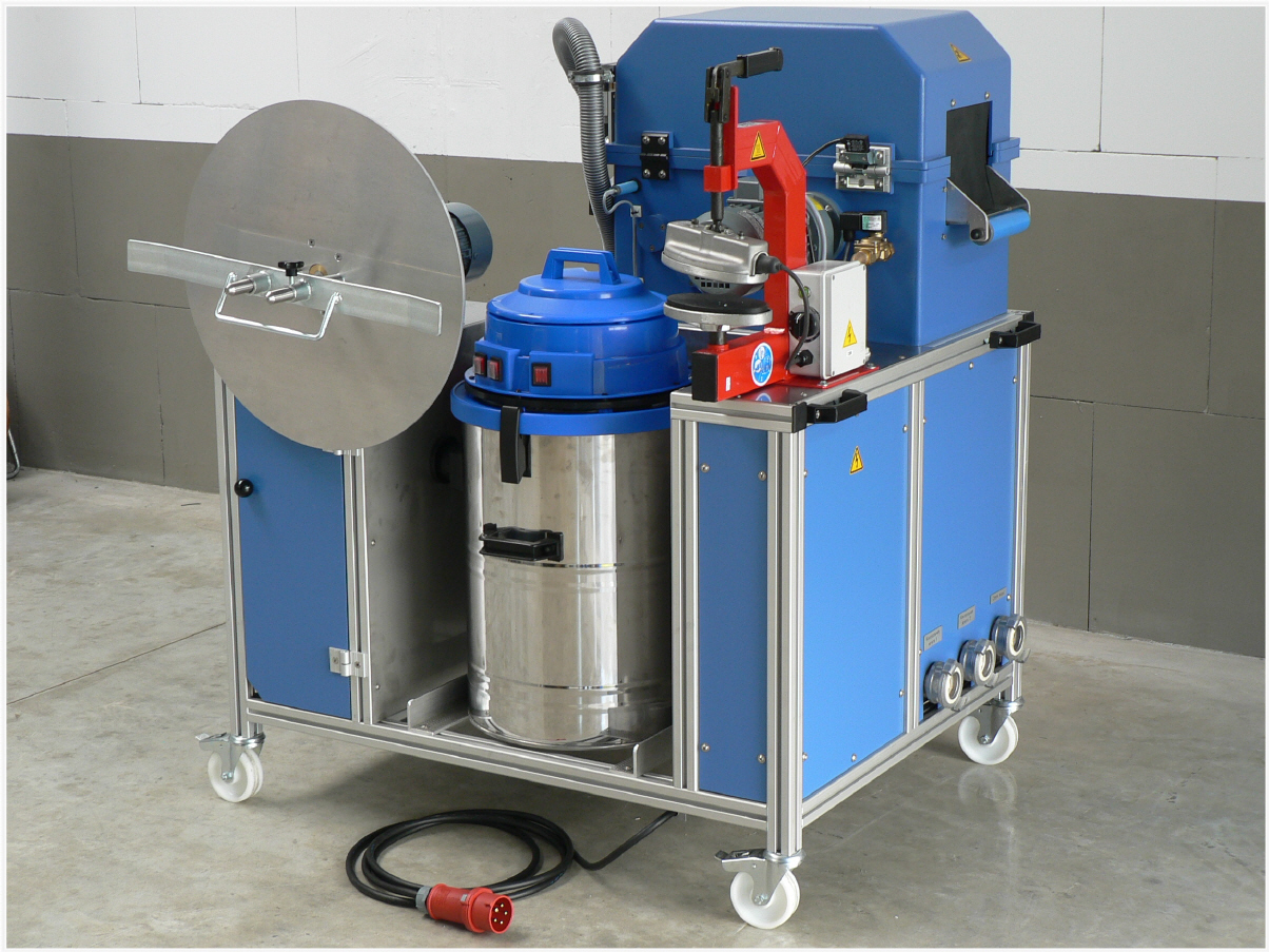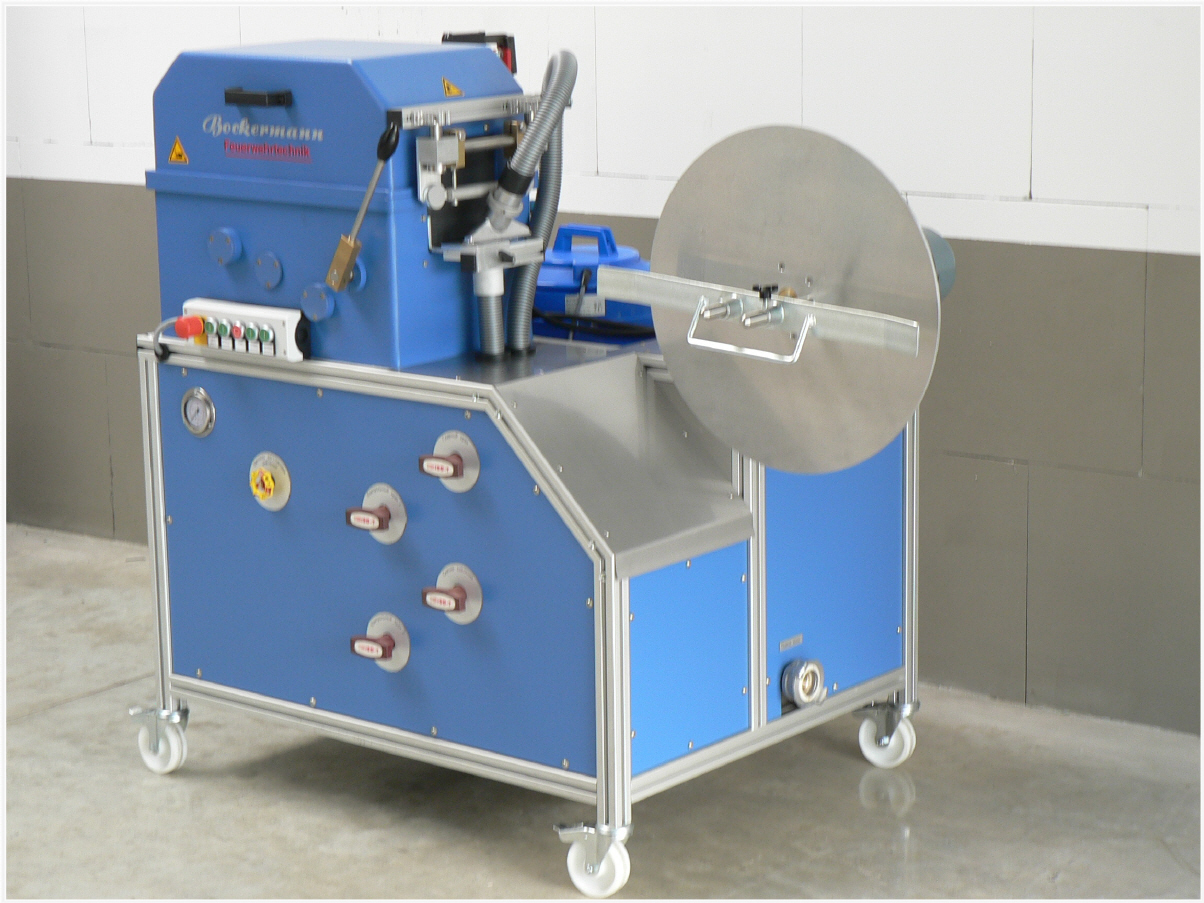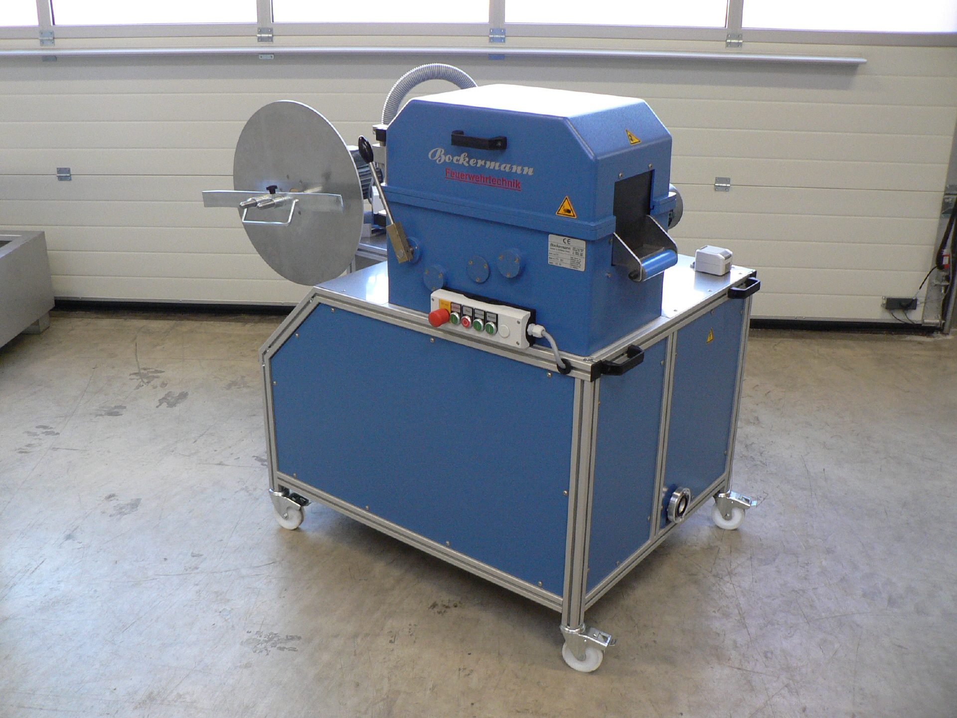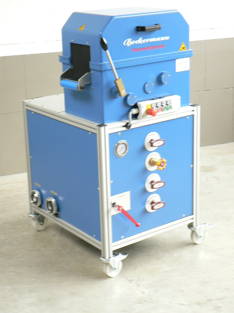 Schlauchpflege-Kompaktgerät SPZ173 zum Voreichen, Waschen, Prüfen und Wickeln von Schläuchen der Größe D bis A.