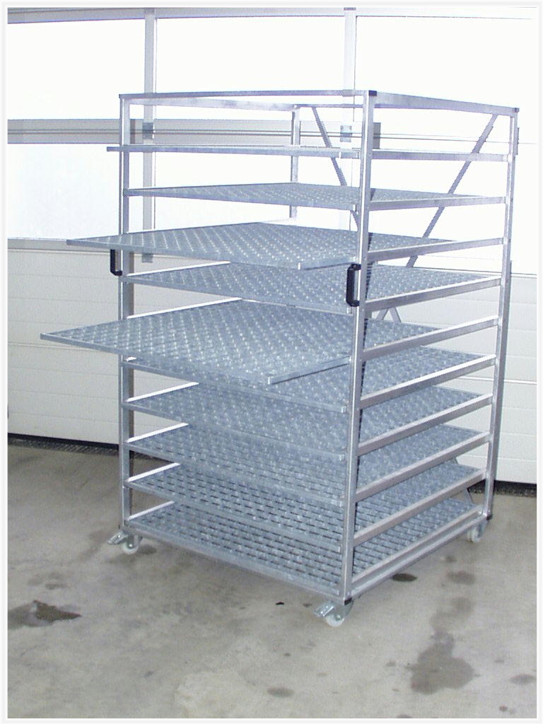 - Hordenwagen mit 10 eingeschobenen Gitterrosten (nur Typ 822)