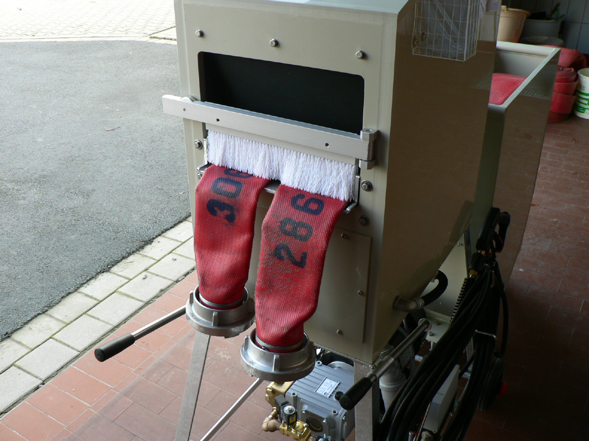 Die Neue unter unseren Schlauchwaschmaschinen ermöglicht das Waschen von ein bis zwei Schläuchen der Größe D bis B oder einem Schlauch der Größe A. Optional kann die Maschine mit zusätzlicher Hochdruckreinigung sowie den Funktionen Druckprüfen (2 Schläuche gleichzeitig) und Wickeln eines Schlauches erweitert werden.
