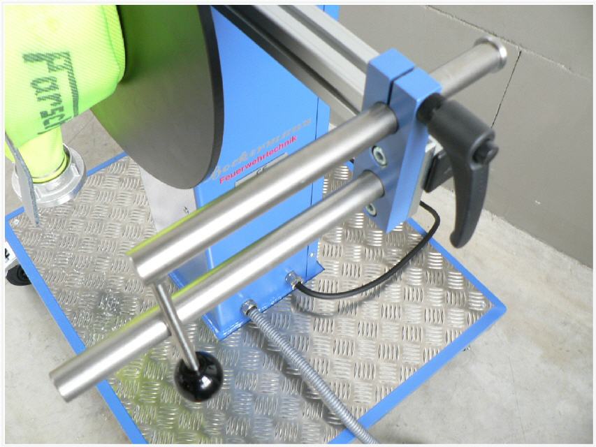 Elektro-Schlauchaufwickler zum mühelosen aufrollen von Feuerwehrschläuchen der Größe D bis A.
