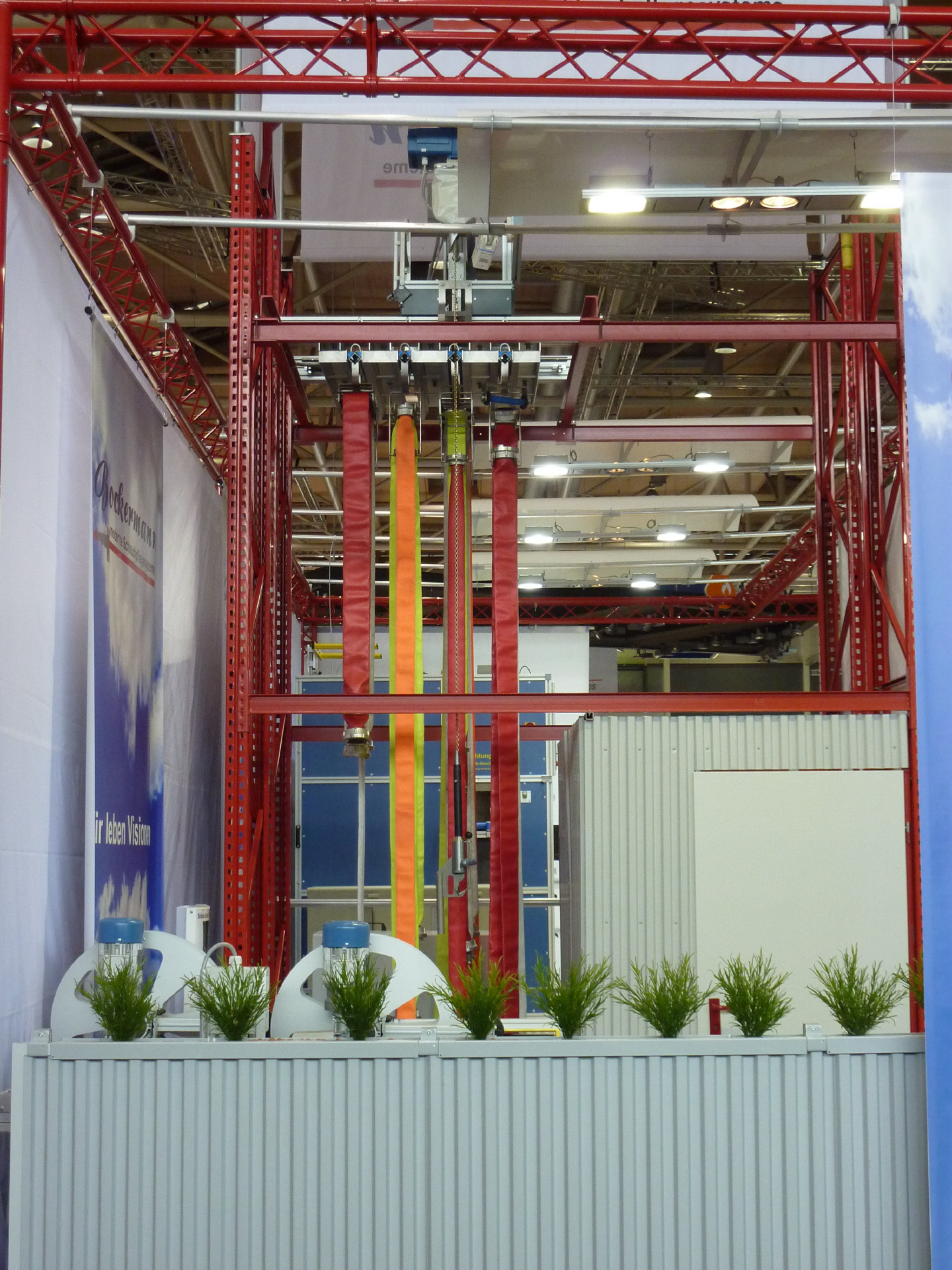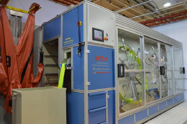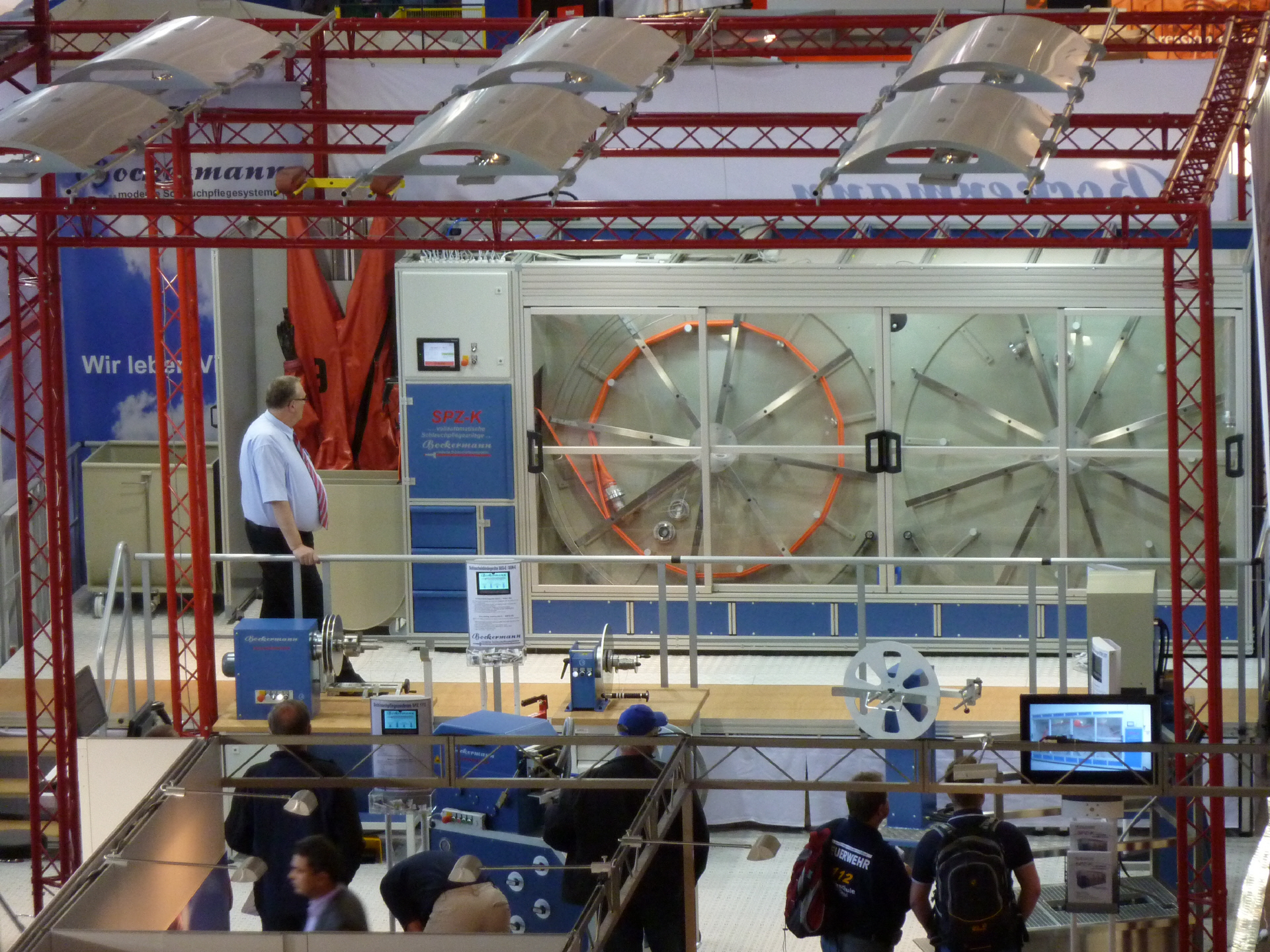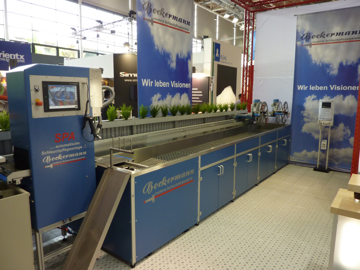 Ein Highlight der Messe war auch in diesem Jahr unsere vollautomatische Schlauchpflegeanlage vom Typ SPZ-K die auf einer Stellfläche von nur 1,5 x 4,8 Metern die Schläuche nahezu vollautomatisch bearbeitet.